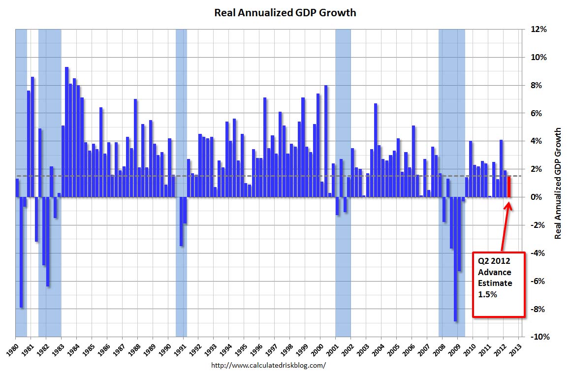 The economy entered recession at the end of 2007 (see graph from Calculated Risk) primarily because of the housing bubble bursting — although “deflating” might be a better term given the stickiness of home prices and the poor understanding of the issues in many U.S. metros, including Savannah.